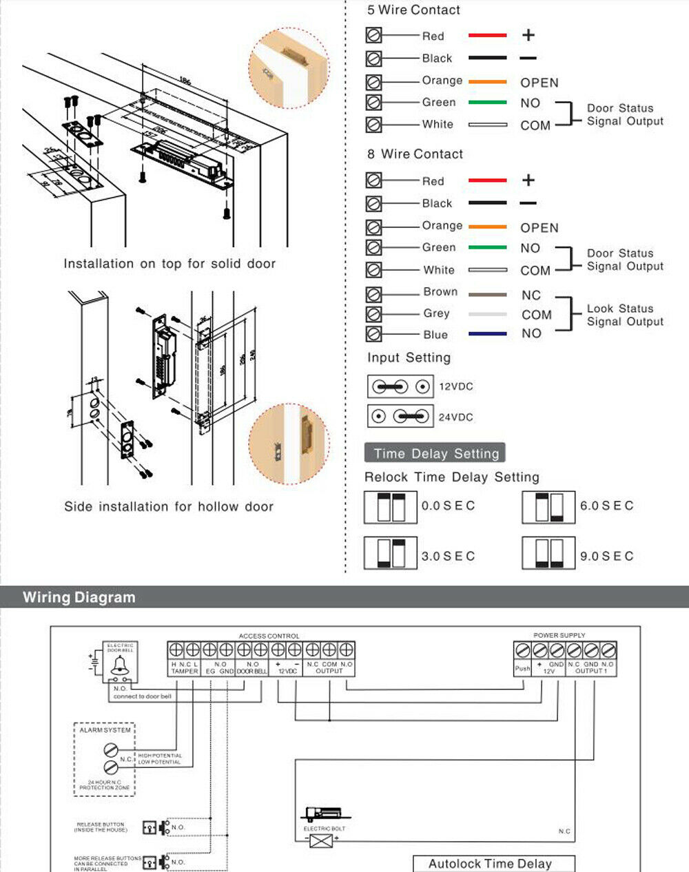 5 Καλώδια: Door Status Signal:NO、COM 8 Καλώδια: Door Status Signal:NO, COM, Lock Status Signal: NO, NC, COM |
